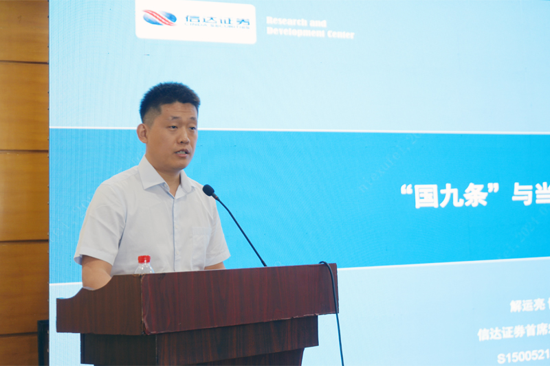會(huì)議由煙臺(tái)財(cái)金集團(tuán)黨委委員、副總經(jīng)理修兆強(qiáng)主持。會(huì)上,中國(guó)信達(dá)山東分公司業(yè)務(wù)四處處長(zhǎng)楊健、信達(dá)證券宏觀首席分析師解運(yùn)亮先后分別以《不良資產(chǎn)視角下的上市公司并購(gòu)重組》和《“國(guó)九條”與當(dāng)前經(jīng)濟(jì)形勢(shì)》為題進(jìn)行主題分享。